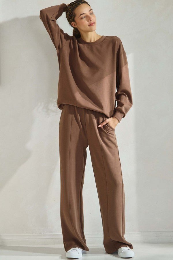 Elevate your comfort with our Relaxed Fit Set. Crafted for a relaxed and comfy fit, provide a perfect blend of style and coziness. This luscious Sofie Soft material ensures a soft touch against your skin, while offering a loose silhouette and a laid-back but contemporary look. Choose comfort without compromising style-redefine your casual wear. Top: - Crewneck - Long Sleeve - Loose-fit with a little extra room - Lightweight and breathable - 2 slanted pockets - Soft against skin - Imported Bottom - Loose-fit with a little extra room - Lightweight and breathable - 2 Side pockets - Soft against skin - Imported