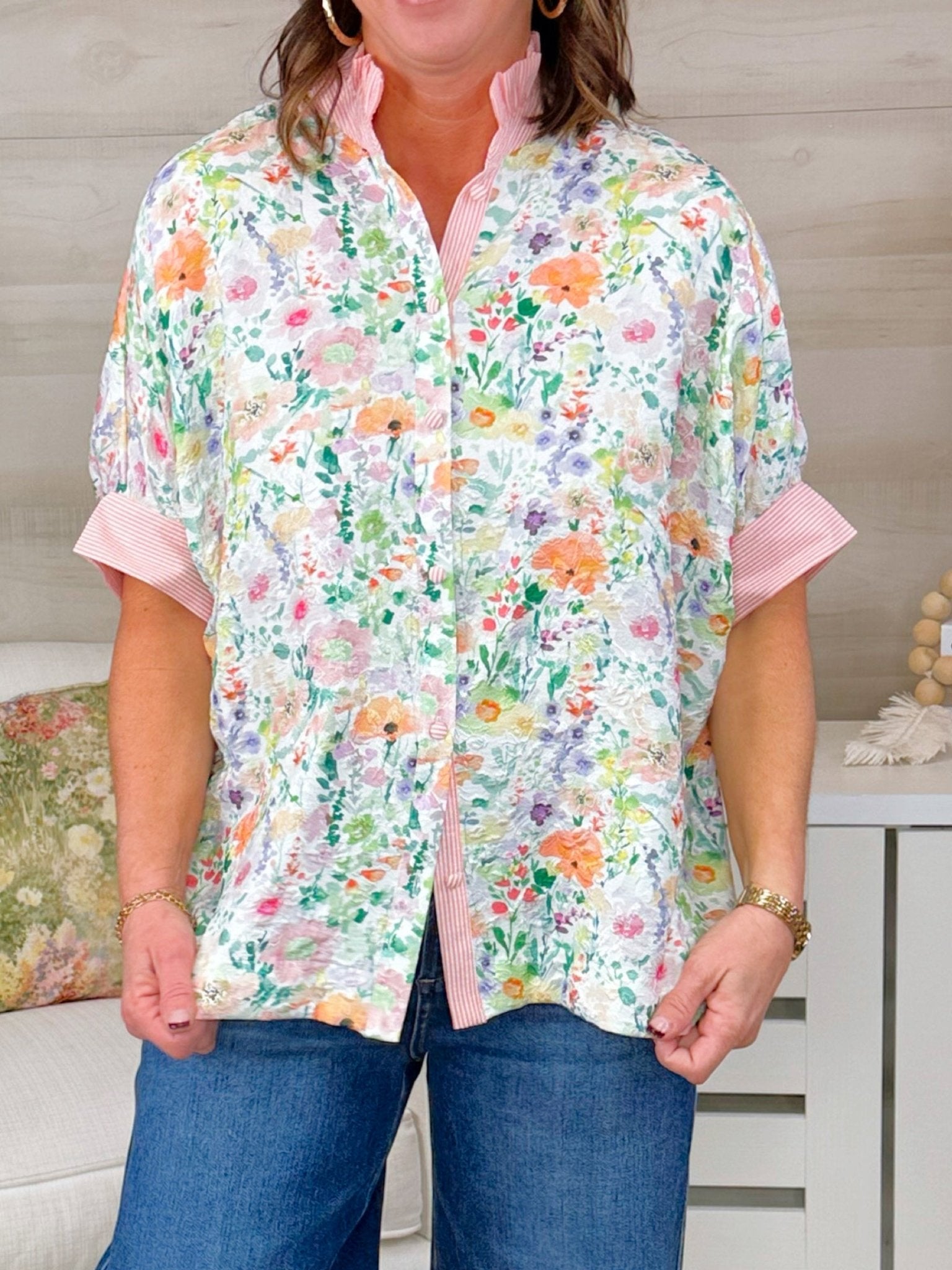 Pretty Things Floral Button - Down Blouse - Jessi Jayne Boutique