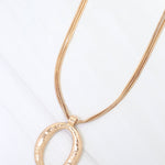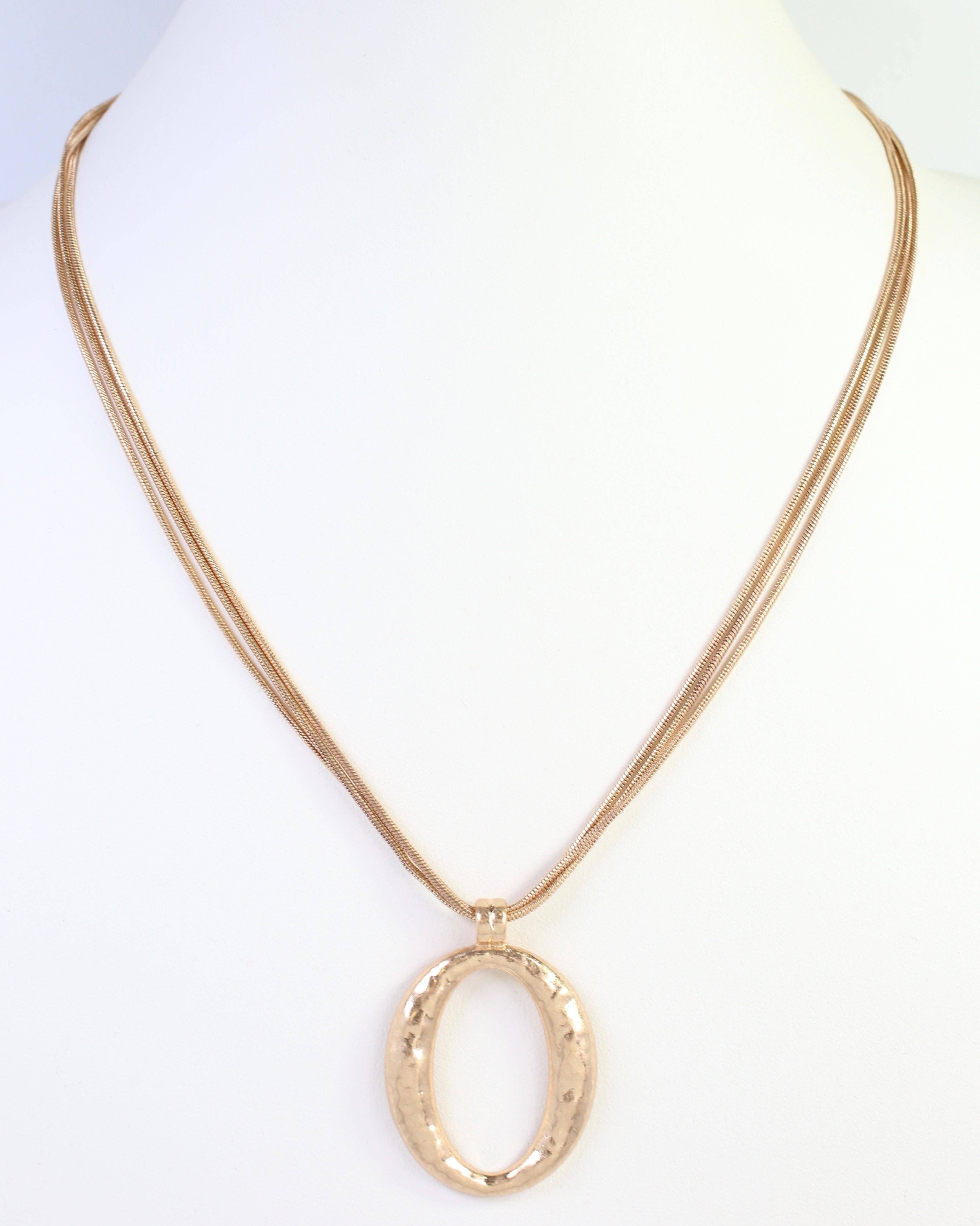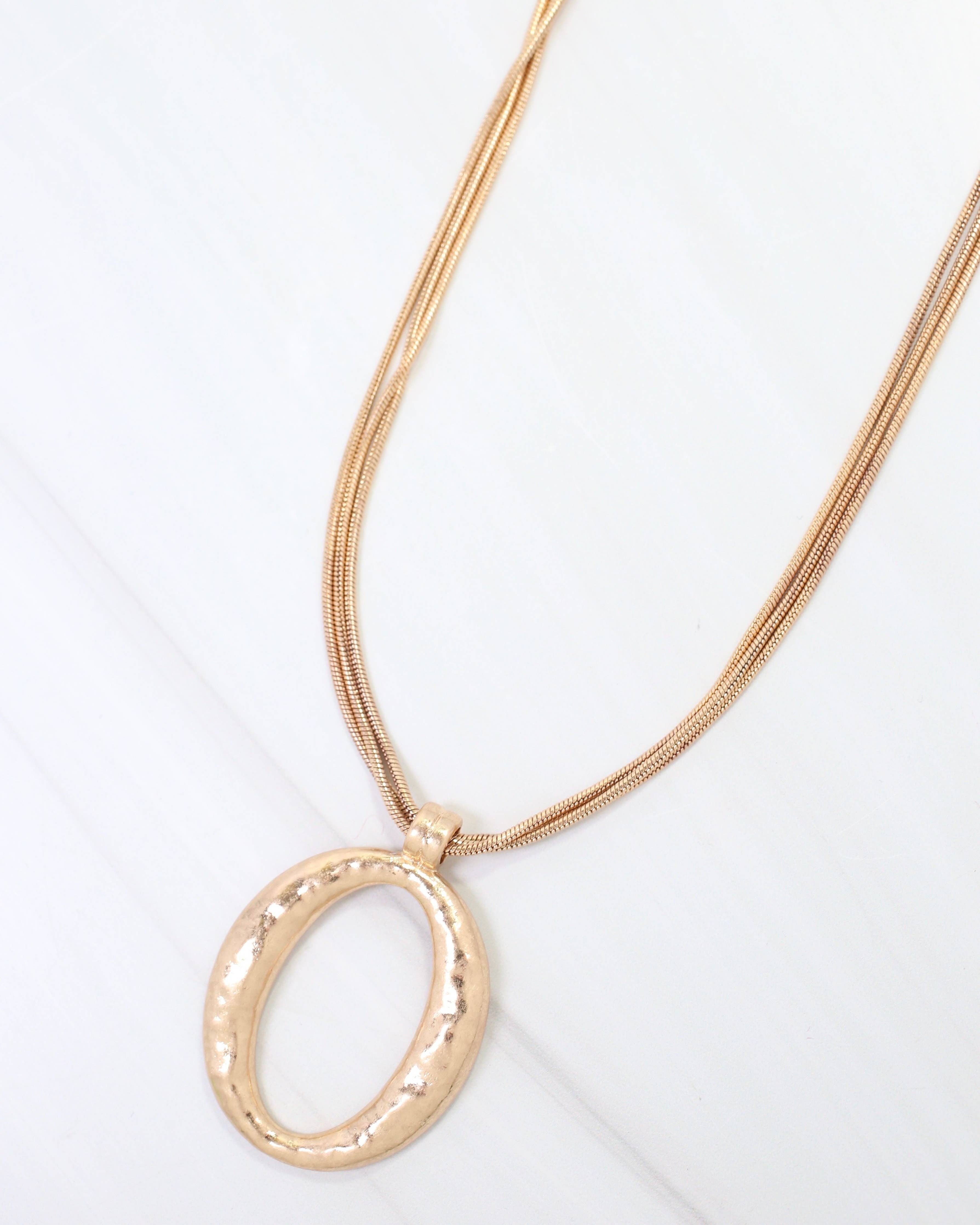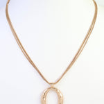 The Grants Layered Cascade Chain with Pendant in worn gold features multiple delicate chains that flow gracefully with a striking pendant focal point. The vintage-inspired worn gold finish adds warmth and character, making it perfect for statement styling or layering with other pieces.