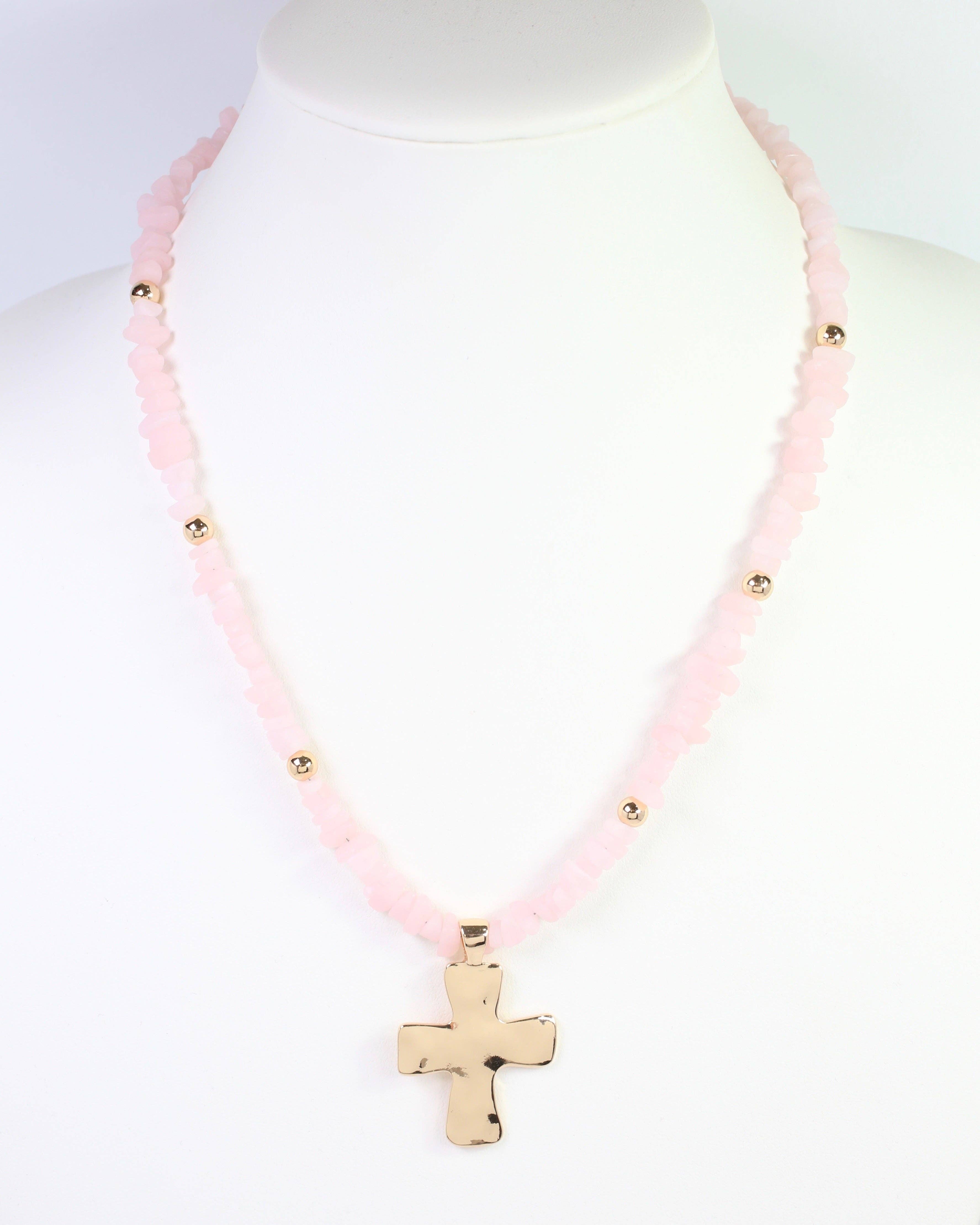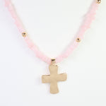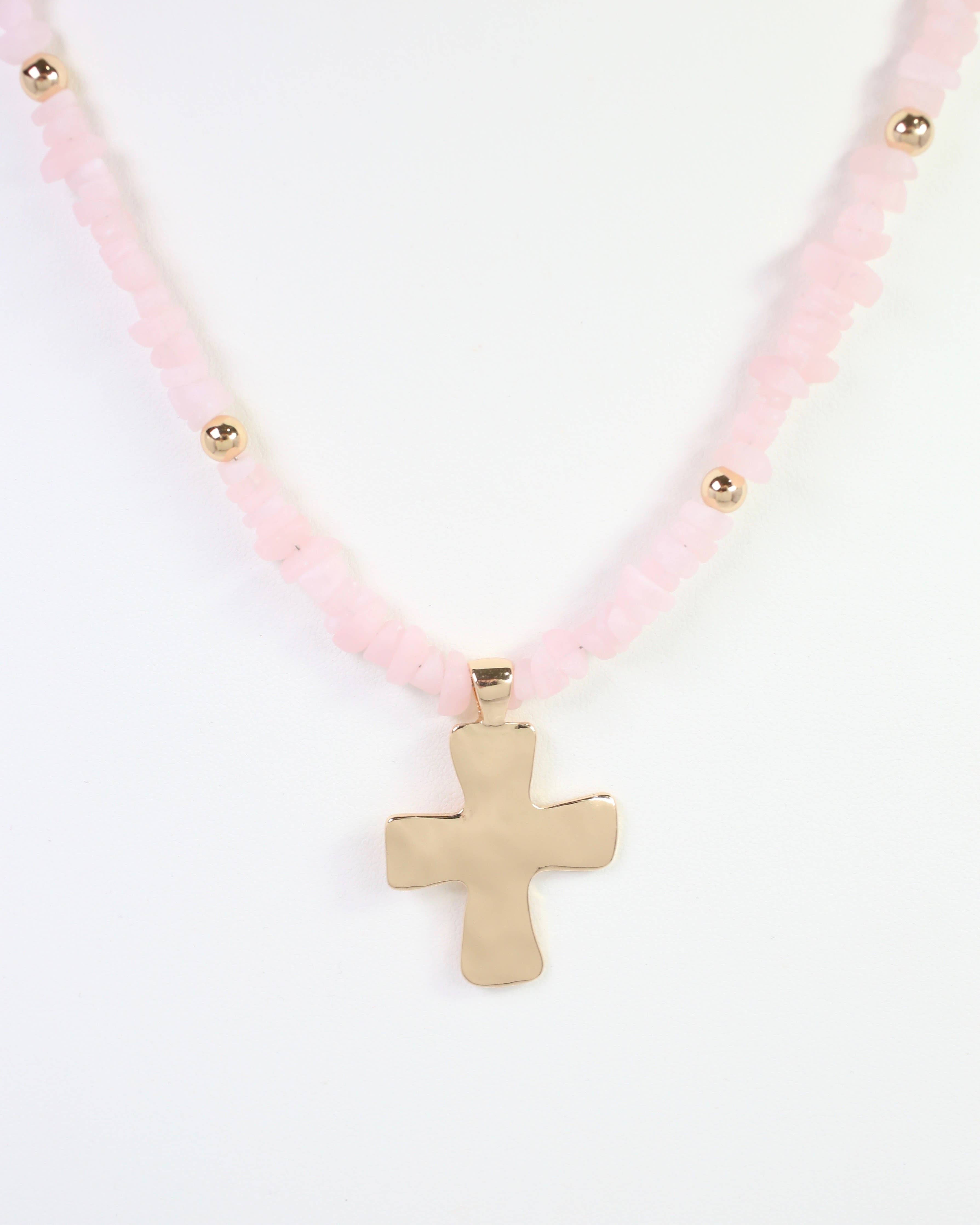 Holland Beaded Cross Necklace Light Pink