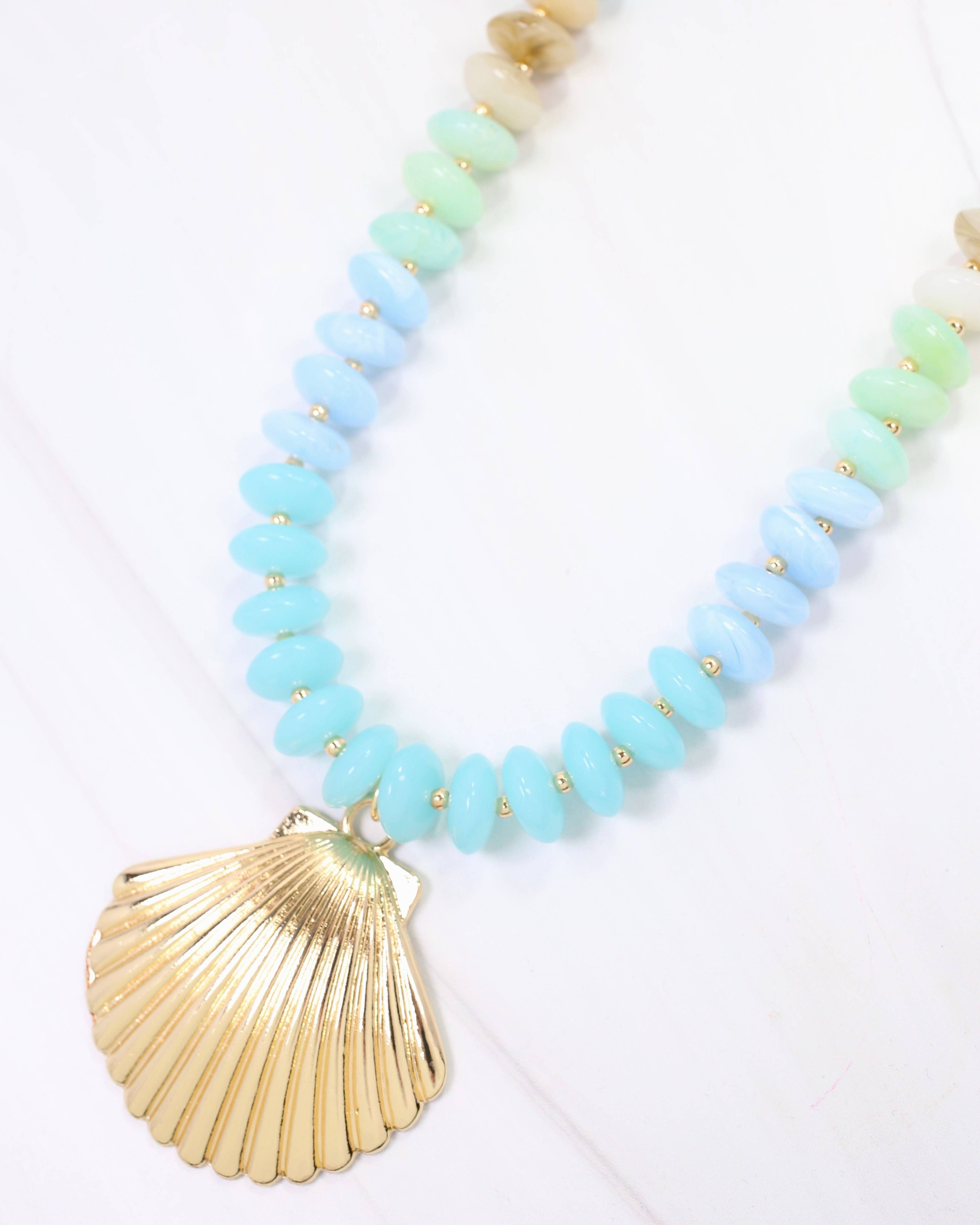 Scally Shell Beaded Necklace Aqua
