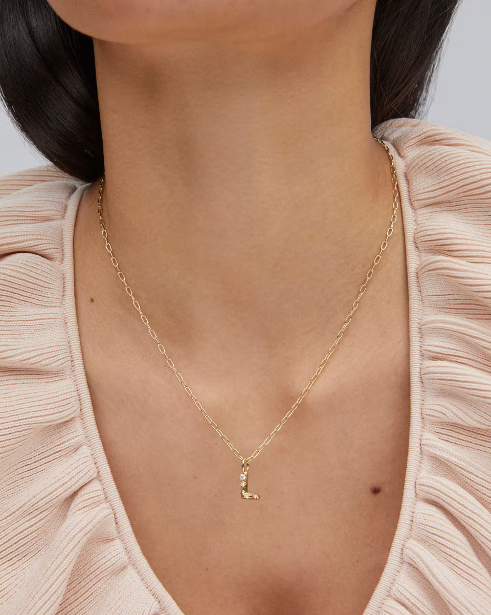 Personalize your everyday look with the Crystal Letter L Gold Short Pendant Necklace in White Crystal. Whether you’re rocking your initial or a loved one’s, this sentimental layer is one you’ll keep coming back to again and again.