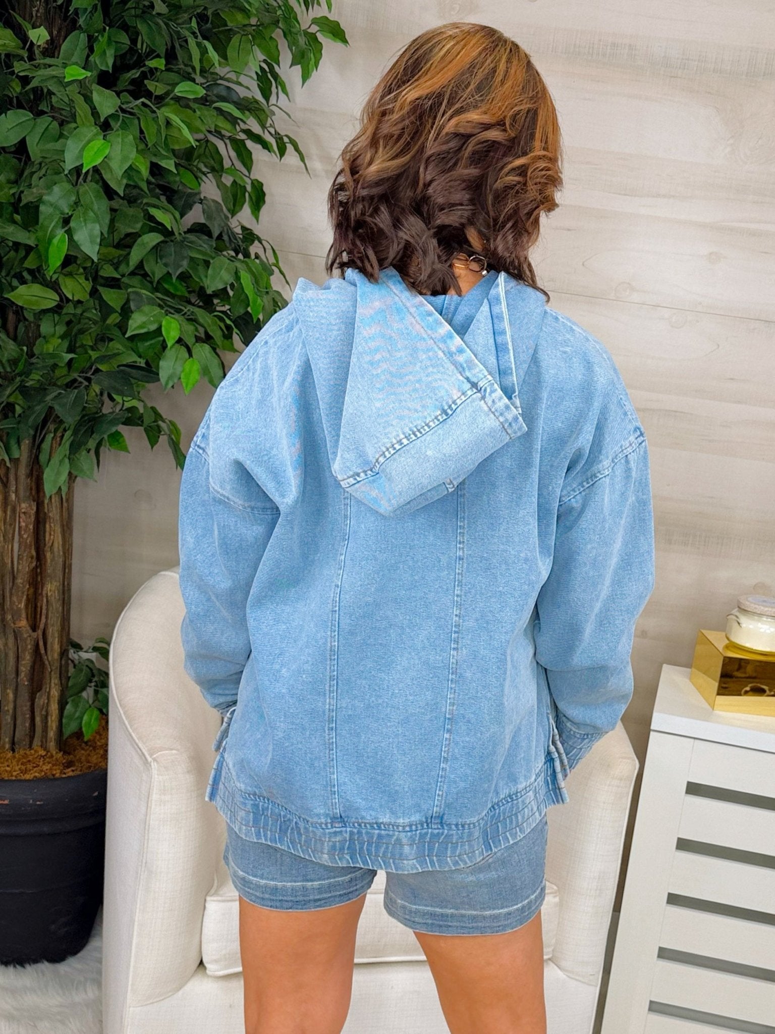 This piece gives you that laid-back denim vibe without the stiffness. The half-zip detail adds a modern touch, the hood makes it feel sporty-cool, and the relaxed fit makes it an easy grab-and-go option you’ll reach for on repeat.